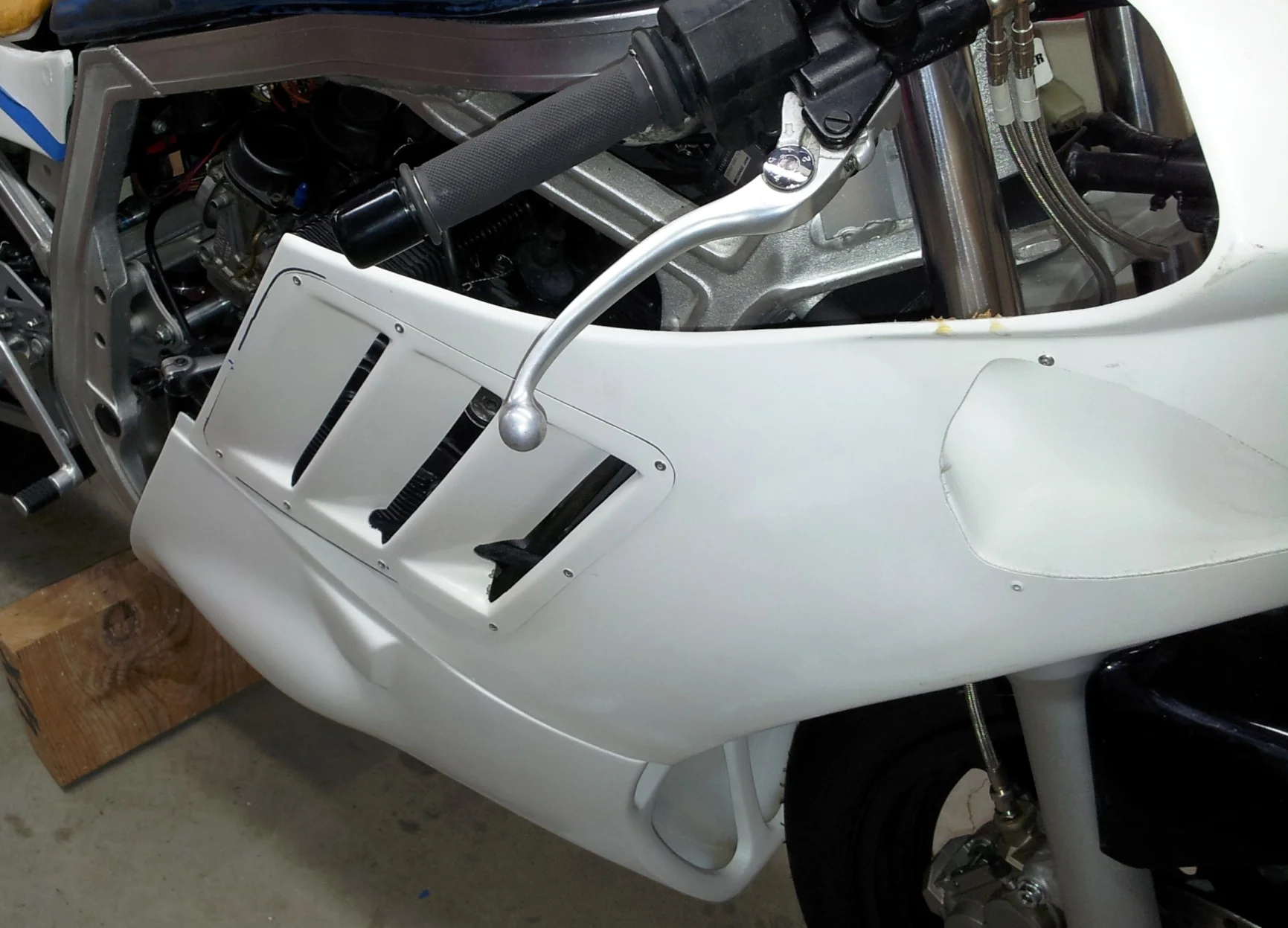 More test fitting showed that the new vents needed clearance around parts of the cylinder head and clutch cable. Additional work was done to fit the fairing lower with new Dzus fasteners added to the side fairings.